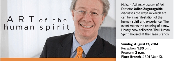 The Kansas City Public Library and Cultural Crossroads will mark the opening of a new collection – The Human Spirit – with a presentation by Julian Zugazagoitia, director of the Nelson-Atkins Museum of Art.