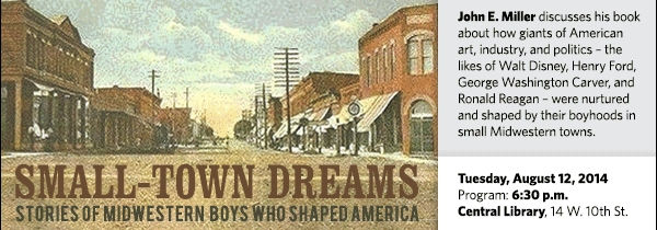 In a discussion of his new book, Small Town Dreams: Stories of Midwestern Boys Who Shaped America, author John E. Miller explores the lives of those and other notables and the small-town environments from which they came. In their stories, as Miller tells them, all appear in a new light – unique in their backgrounds and accomplishments, united only in the way their lives reveal the persisting, shaping power of place.
