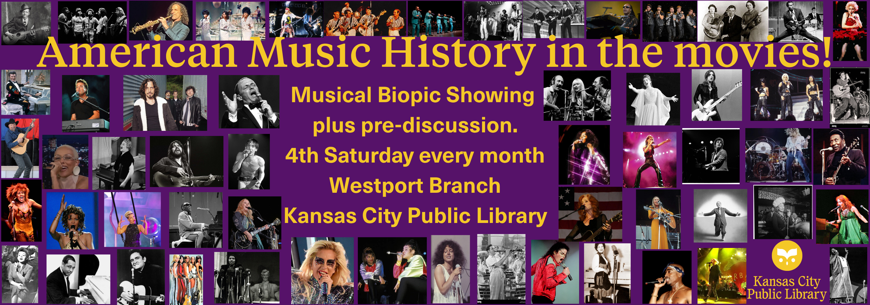Join us every 4th Saturday of the month at the Westport branch to appreciate and learn about the History of American Music through a musical biopic! There will be a short pre-discussion on the artist/band/group(s) featured in the film, and then most of the biopic will be shown.