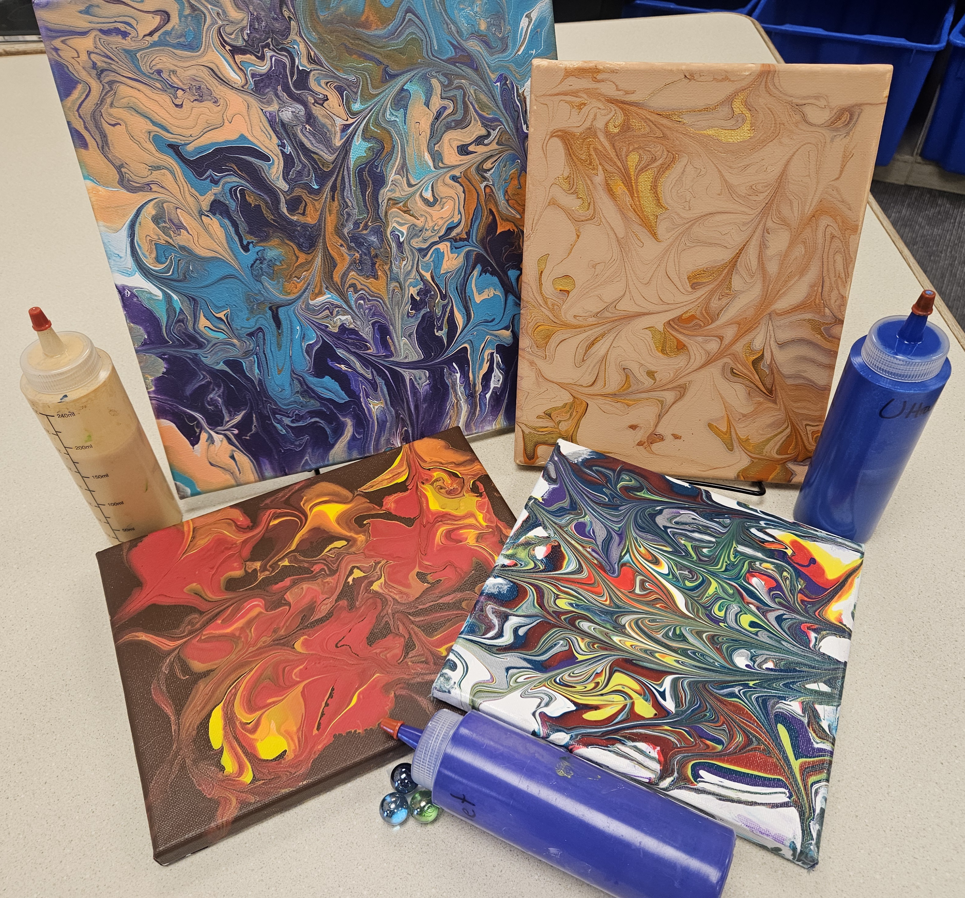 This technique seems to be a favorite! Participants will use marbles to create a design in paint on 8x10 canvas.