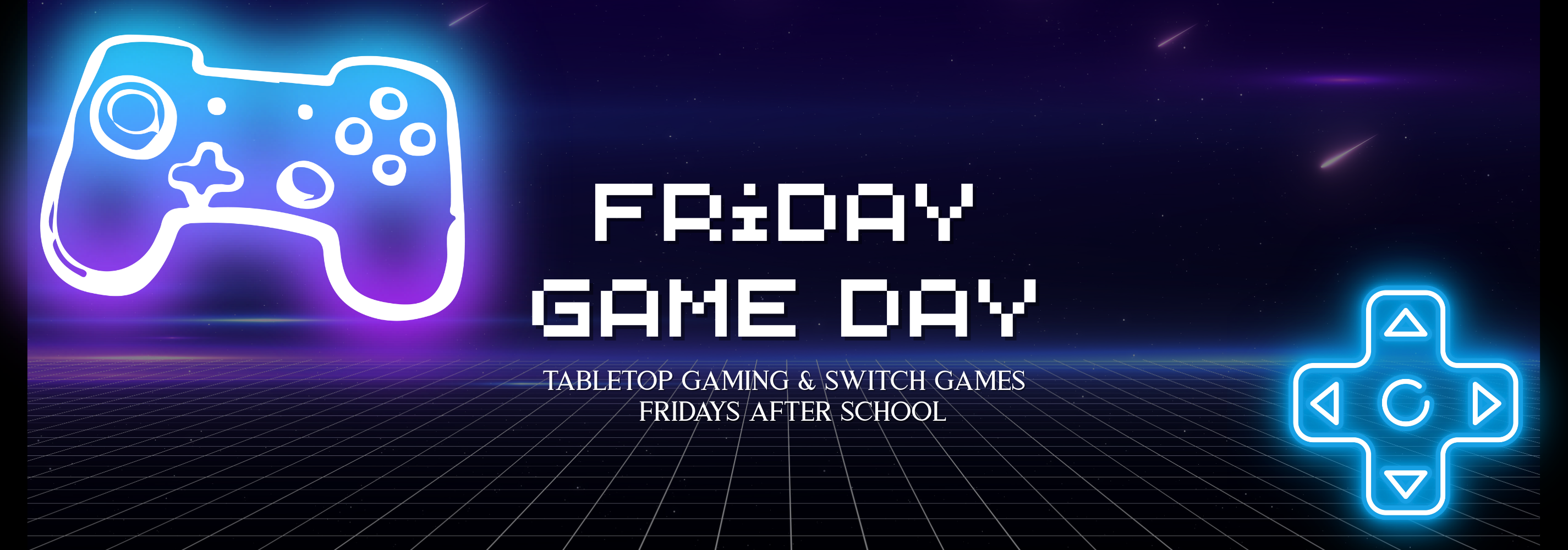 Stop by after school for some games and snacks! Both the traditional tabletop games and switch games.