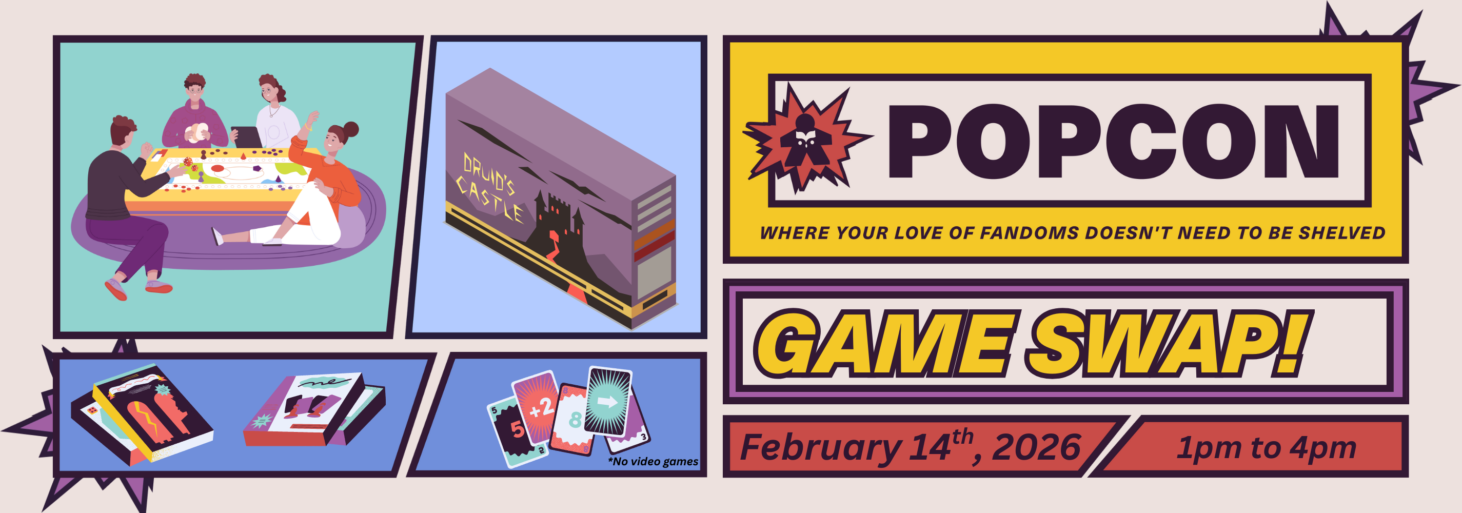 Join us in collecting for our first ever Game Swap! During the month of January, bring in games and receive a token for each game you bring. Come back for PopCon and swap out your tokens for new-to-you games!