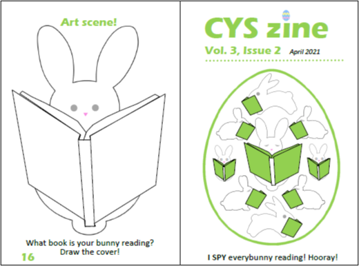 The April 2021 CYS kids zine is now available! It is hopping with great new books for Spring and Poetry Month and much more!