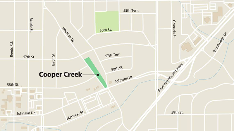 The Star’s only mentions of Cooper Creek relate to its tendency to flood and to efforts at controlling the storm runoff. In September 1961, a Star story said the Mission City Council wanted to establish a Cooper Creek drainage district to tackle the flooding problem. The creek begins in Mission before flowing into Roeland Park.