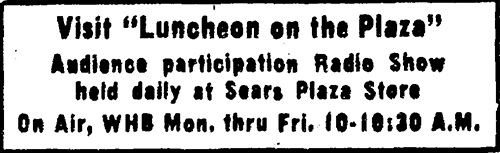 Sure enough, “Swing,” a promotional publication of WHB Radio, confirmed that the station aired its own “Luncheon On the Plaza” program mid-mornings daily from 1949 until 1951.