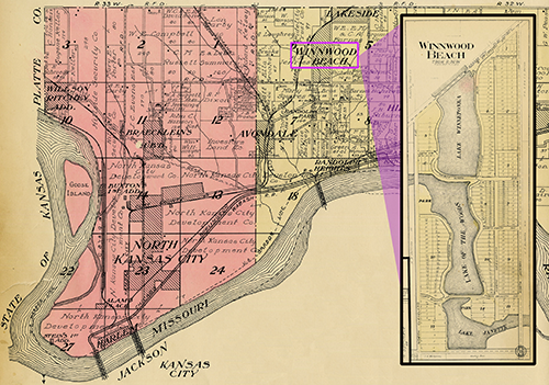He began planning a lake on the family property abutting the planned Kansas City, Clay County and St. Joseph Electric Railway line. The Armour-Swift-Burlington (ASB) Bridge, connecting downtown KC with Clay County to the north, was completed in 1911, and interurban trains began running to St. Joseph and back in 1913. Winn dammed a creek on the property, and the clear, spring-fed waters of Winnwood Lake were born.