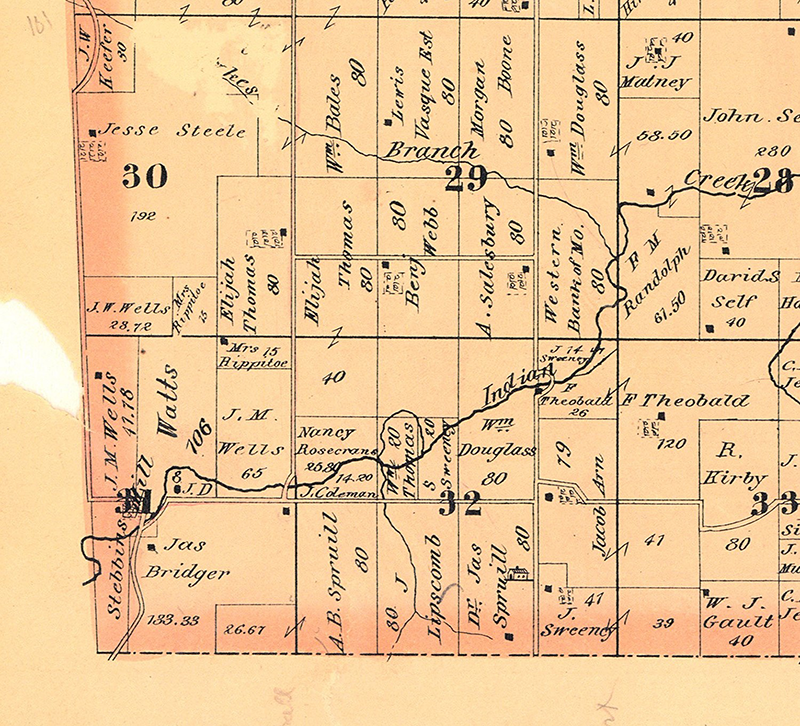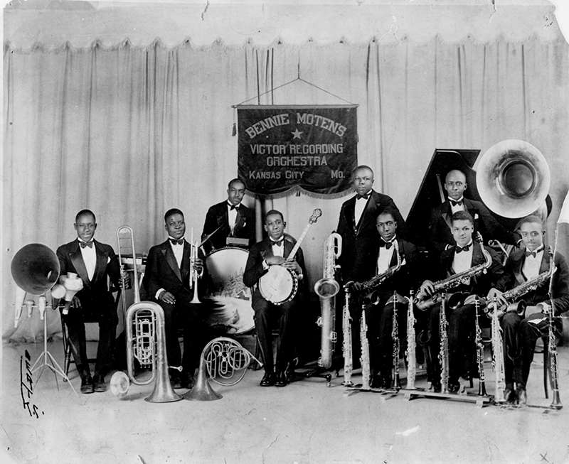 Information on Watts Mill and Dallas, Missouri was found by consulting databases, newspapers, maps, and vertical files in Missouri Valley Special Collections at the Central Library. Ronald Becher’s manuscript, “Notes on Fitzhugh’s/Watts’ Mill”, provided detailed information about the mill’s history and an image of the ruins. Additional images were found in MVSC’s collections. The photograph of the Bennie Moten Victor Recording Orchestra is from the Goin’ to Kansas City Collection courtesy of Charles Goodwin and the Kansas City Museum and used with permission.