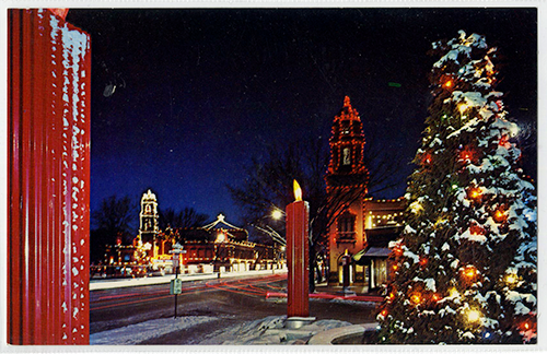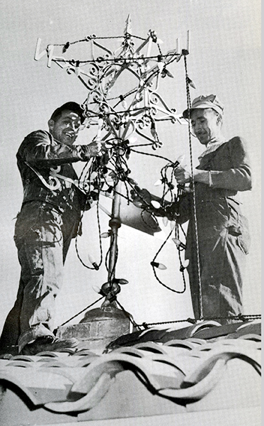 In 1925, Charles "Pete" Pitrat, maintenance supervisor for the Nichols Company, hung Christmas lights on the Mill Creek Building for the first time. The display was hardly impressive by modern standards: a few strands of lights over a doorway with some small Christmas trees arranged along the sidewalk.
