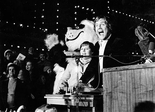 From those humble beginnings, Pitrat oversaw the installment of more lights each year. When the Plaza Theater opened in 1928, he marked the occasion by stringing several strands of lights to the rooftops of opposing buildings along 47th Street, creating an illuminated tunnel effect. Later, in 1929, lights were added to the edges and roofs, establishing the building outline pattern for which the Plaza lights have become known, and the first formal lighting ceremony was held.