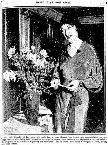 Another man in the back seat attempted to put a sack over Donnelly’s head. She would later recount how she “got [her] Irish up,” trying to fight off the attacker and screaming as the car was being driven away by the kidnappers.