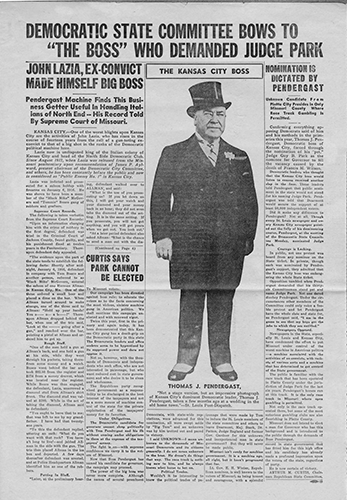 Unknown Republican publication without volume or issue identification with excerpts from several St. Louis newspapers about the corrupting influence of Tom Pendergast in Kansas City, including the accusation that he chose the Democratic nominee for Governor. Crimes committed by Johnny Lazia and others are also described. | Jackson County Historical Society