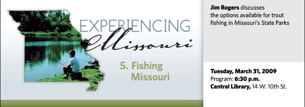 In the final program, Jim Rogers discusses trout fishing opportunities in Missouri in a multi-media talk titled Trout Fishing in Missouri’s State Parks on Tuesday, March 31, at 6:30 p.m. at the Central Library, 14 W. 10th St.