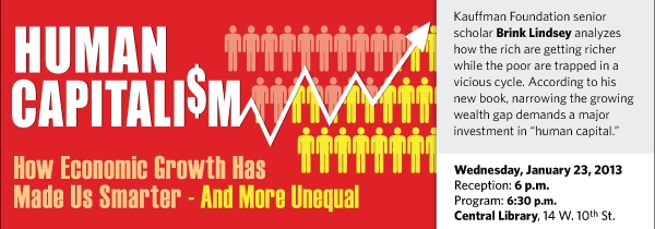 Narrowing the growing gap between the wealthy and the rest of us demands a major investment in “human capital,” according to Kauffman Foundation senior scholar Brink Lindsey.