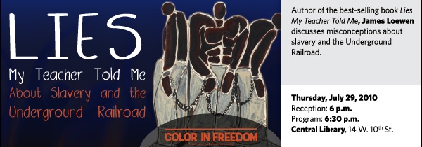 James Loewen, best-selling author of Lies My Teacher Told Me, gives an original presentation on misconceptions about slavery and the Underground Railroad on Thursday, July 29, at 6:30 p.m. at the Central Library, 14 W. 10th St.