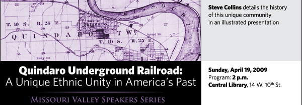 Steve Collins details the history of this unique community on Sunday, April 19, at 2 p.m. at the Central Library, 14 W. 10th St. This illustrated presentation explores Quindaro's founding by members of the Wyandot tribe as well as the community's role in the abolitionist movement within the Kansas Territory.