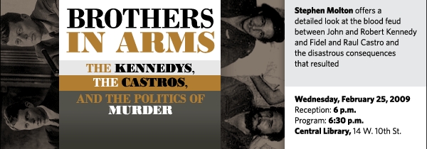Author Stephen Molton discusses his new book Brothers in Arms: The Kennedys, the Castros, and the Politics of Murder on Wednesday, February 25, at 6:30 p.m. at the Central Library, 14 W. 10th St.