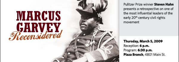 On Thursday, March 5, at 6:30 p.m. at the Plaza Branch, 4801 Main St., Pulitzer Prize-winning author Steven Hahn presents Marcus Garvey Reconsidered, a retrospective on one of the most influential—and least-remembered—leaders of the early 20th century civil rights movement.