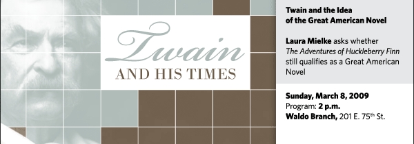 The Kansas City Public Library brings its Twain and His Times series to a close with Twain and the Idea of the Great American Novel on Sunday, March 8, at 2 p.m. at the Waldo Branch, 201 E. 75th St.