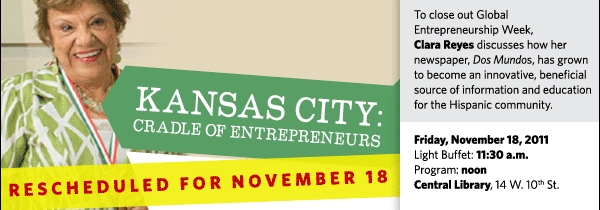 Global Entrepreneurship Week closes as Library Director Crosby Kemper III conducts a public conversation with Clara Reyes, founder of the Kansas City bilingual newspaper, Dos Mundos.