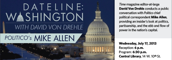 David Von Drehle – Time magazine’s editor-at-large and a Kansas City resident – holds a public conversation with Politico chief political correspondent Mike Allen. Allen is creator of the influential daily news digest Playbook and “the man the White House wakes up to,” in the words of The New York Times Magazine.