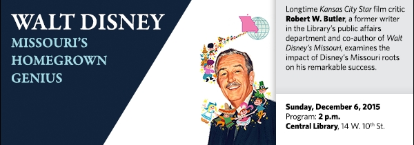 Robert W. Butler, longtime film critic for The Kansas City Star, former writer in the Library’s public affairs department, and co-author of Walt Disney’s Missouri, traces Disney’s improbable path to success.