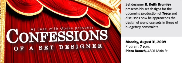 The At Ease with Opera series returns to the Plaza Branch, 4801 Main St., in August with two programs focusing on the Lyric Opera of Kansas City’s September production of Giacomo Puccini’s Tosca.