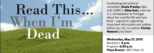 Presley, a native Missourian and accomplished fundraising and political consultant, discusses both her eventful career and her new book on planning for the end in a public conversation with University of Missouri-Kansas City professor and former U.S. ambassador to Portugal Allan Katz.