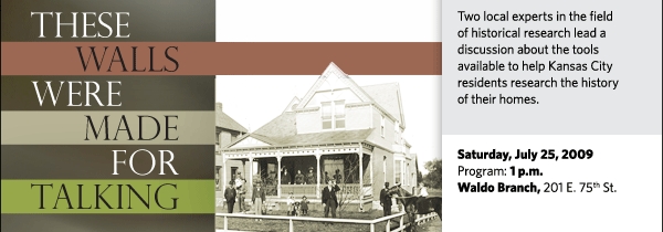 Your house just might be a tangible piece of Kansas City history. Gain the tools to coax your home into telling its tale on Saturday, July 25, at 1 p.m. at the Waldo Branch, 201 E. 75th St.