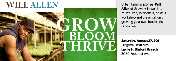 Urban farming pioneer Will Allen of Growing Power Inc. hosts a workshop and presentation on growing your own food in the urban core.
